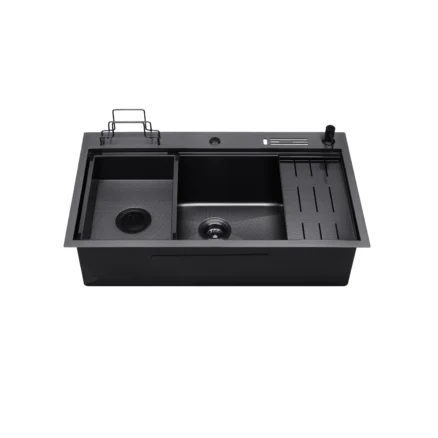 Description: Honeycomb Multifunctional Kitchen Sink Dimension: L800xW500xH230mm Material: 304 Stainless Steel Color: Black